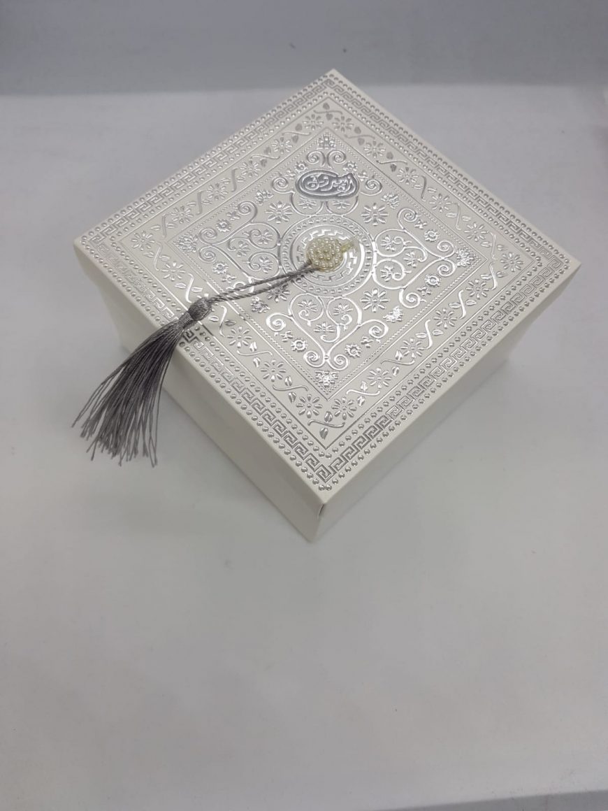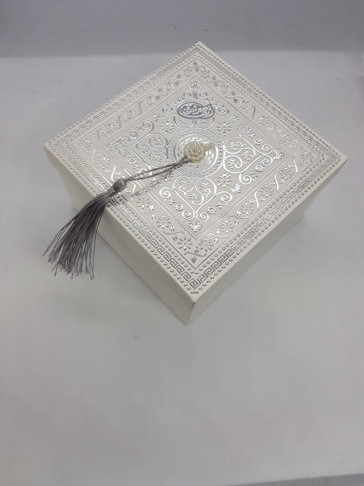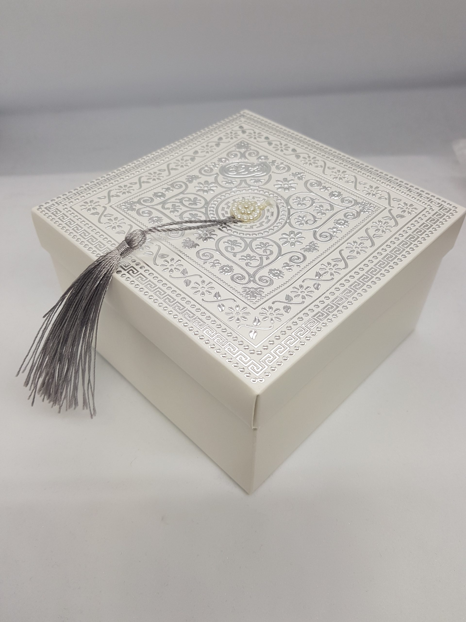 25 Boîtes à gâteaux mariage carrées motif AR avec pompon