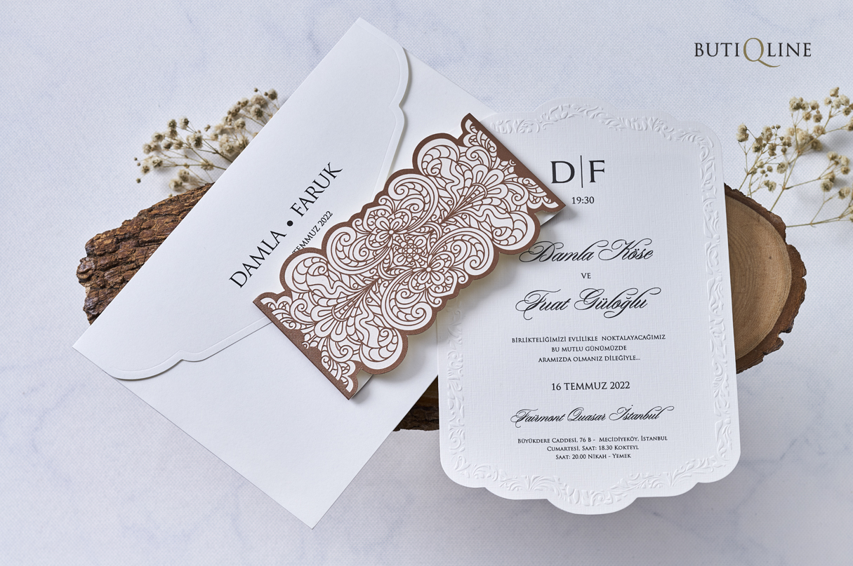 Ensuite, le second élément est la bandelette qui entoure le faire part. Elle est entièrement prédécoupé au laser en motifs en forme d’arabesque.